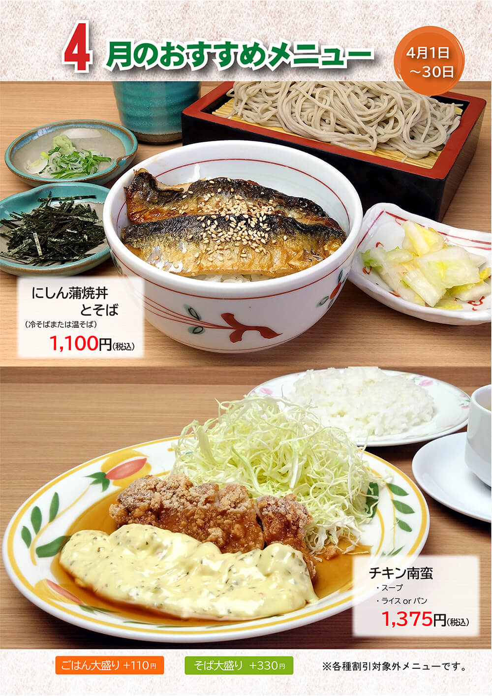 「ランチメニュー」個性豊かな手打ち蕎麦が楽しめる