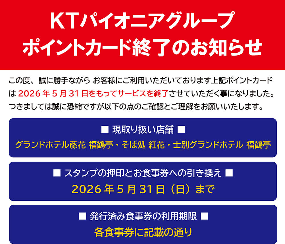 KTパイオニアグループ ポイントカード終了のお知らせ